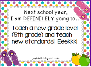 Since I am looping up to teach 5th grade next year, I will most definitely be learning new standards and teaching all new things! We are also implementing Common Core standards in Reading and Math AND adopting a new Math book! Eeeeekkkkk!