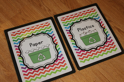 I was inspired by Clutter Free Classroom to create labels for my recycling bins. We began a school-wide recycling program a few years ago and each classroom has two bins: one for paper and one for plastic. I love my new labels!