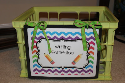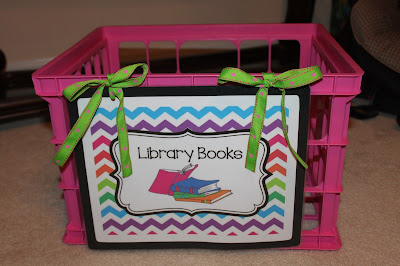 I was also inspired (Clutter Free Classroom & Pinterest) to create crates for Writing portfolio's and library books. I've never had the best system for students to return library books. I've had students keep them and return them when we go to library. I've had student turn them into a tote in the mornings, but the tote was too heavy and not easy to carry.