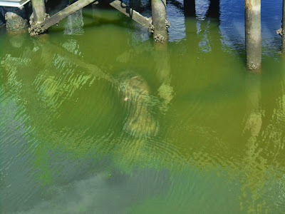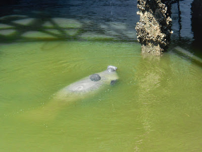 It was a MANATEE! How awesome is that?! We loved watching it come up from the water and then later saw it playing in this dripping water!