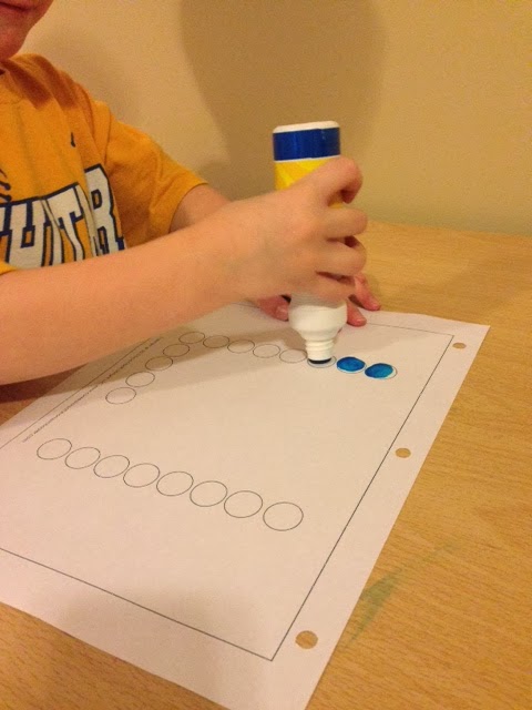 We also worked on number order 0-9. I let him put them in number order and he got to the end and still had the number 0 and was not sure where to put it. It dawned on me that I've never told him about the number 0. Oops! I'm curious to see how he does tomorrow when we do this activity again.