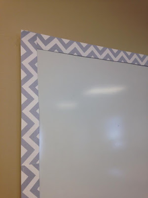 Next I added bulletin board border around my dry erase board. This border was actually so wide that I decided to cut it in half to make a smaller border. It adds just a bit of a pop to my board.