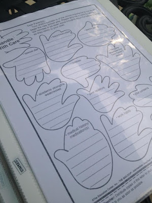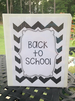 Over the years I've kept a back to school binder full of papers I use at the beginning of school and various other materials. I went through the binder and purged papers that I didn't think I'd use again. I also upgraded to a white binder and create a new cover.