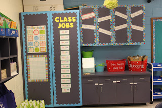 This year we have implemented the clip up system shown on the left. Our school has a school-wide discipline policy with flipping tickets so green and everything below it sticks with that but we added a more positive approach as well. You also see my simplified classroom helpers and ambassador.