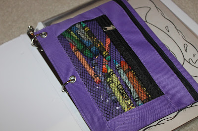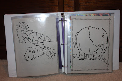 This week I am spending time at one of my favorite places: the beach! We live about 3 1/2 hours from the beach, but that can still be a long drive for my little one, who is 3 years old. So, I decided to make a road trip notebook! First, I bought a binder and a pencil pouch. I already had the page protectors and all of the materials I put inside. Inside the pencil pouch, I put some crayons for him to use. Then, I filled the page protectors with things like coloring pages, blank pages with stickers, and thin books. I got this idea HERE. Here are some pictures of our road trip notebook!